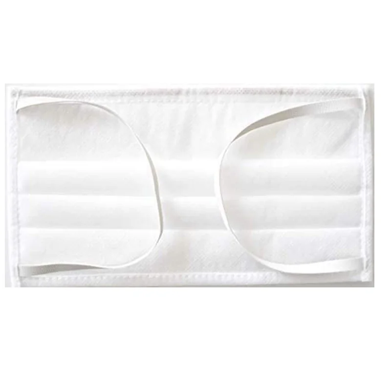 Masque de protection des voies respiratoires 3 couches avec élastique de fixation. Ce masque présente une efficacité de filtration supérieure à 70% et ceci correspondant aux particules de 3.0μm et par la suite une performance de protection compatible avec un masque de barrière à usage non sanitaire