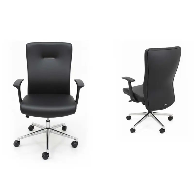 SIEGE TOKYO avec assise et dossier rembourrés en mousse injectée et couche de dacron pour un confort optimal. Revêtement en tissu ou simili cuir (matières et couleurs selon disponibilité). Accoudoirs soft en polypropylène, ajustables 3D. Équipé d’un mécanisme synchronique tournant, réglable en hauteur et en inclinaison. Base étoilée à 5 branches en chrome avec 5 roulettes doubles pour une grande mobilité.