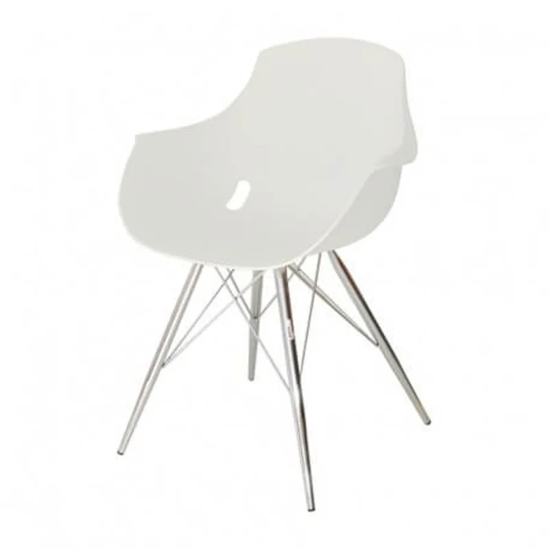 Chaise au design industriel avec accoudoirs dotée d'une assise confortable. Avec ses pieds en métal chromé. il trouve facilement sa place dans une décoration de style industriel.