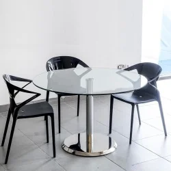 Table de réunion Clio diamètre 120 en verre socle Inox