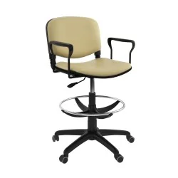 Assise et dossier rembourrés en mousse souple. Le revêtement en simili cuir. Accoudoirs fixe en métal recouvert de polypropylène couleur noir. Mécanisme tournant, réglable en hauteur avec contact permanent du dossier. Structure étoilé à 05 branches fixe en avec repose pieds métallique en époxy noir.