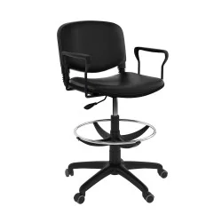 Assise et dossier rembourrés en mousse souple. Le revêtement en simili cuir. Accoudoirs fixe en métal recouvert de polypropylène couleur noir. Mécanisme tournant, réglable en hauteur avec contact permanent du dossier. Structure étoilé à 05 branches fixe en avec repose pieds métallique en époxy noir.