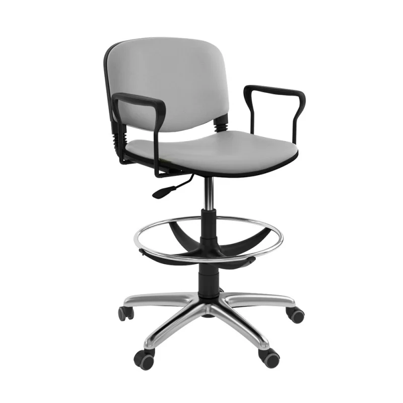 Assise et dossier rembourrés en mousse souple. Le revêtement en simili cuir. Accoudoirs fixe en métal recouvert de polypropylène couleur noir. Mécanisme tournant, réglable en hauteur avec contact permanent du dossier. Structure étoilé à 05 branches fixe en avec repose pieds métallique en époxy noir.