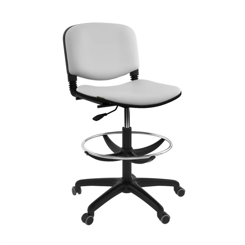 Assise et dossier rembourrés en mousse souple. Le revêtement en simili cuir. Mécanisme tournant, réglable en hauteur avec contact permanent du dossier. Structure étoilé à 05 branches en couleur noir avec 05 roulettes tournantes roulantes à double galets même matière.