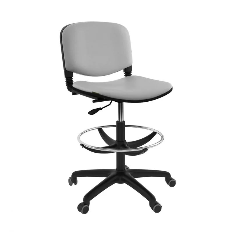 Assise et dossier rembourrés en mousse souple. Le revêtement en simili cuir. Mécanisme tournant, réglable en hauteur avec contact permanent du dossier. Structure étoilé à 05 branches en couleur noir avec 05 roulettes tournantes roulantes à double galets même matière.