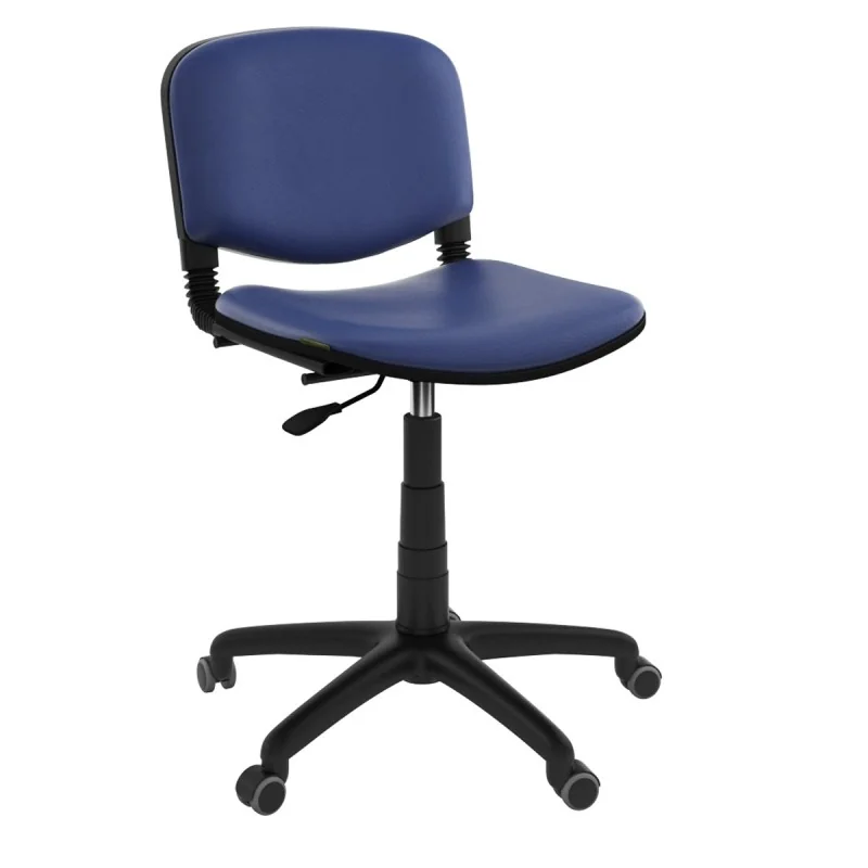 Assise et dossier rembourrés en mousse souple. Le revêtement en simili cuir. Mécanisme tournant, réglable en hauteur avec contact permanent du dossier. Structure étoilé à 05 branches en couleur noir avec 05 roulettes tournantes roulantes à double galets même matière.