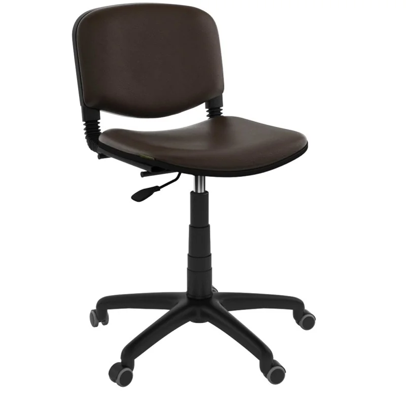 Assise et dossier rembourrés en mousse souple. Le revêtement en simili cuir. Mécanisme tournant, réglable en hauteur avec contact permanent du dossier. Structure étoilé à 05 branches en couleur noir avec 05 roulettes tournantes roulantes à double galets même matière.