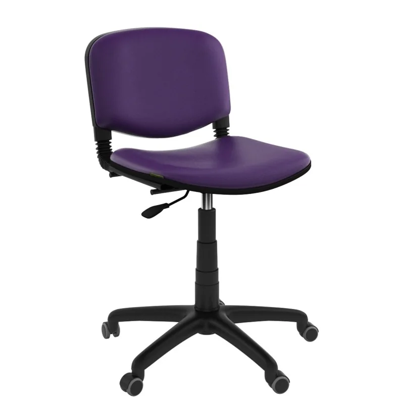 Assise et dossier rembourrés en mousse souple. Le revêtement en simili cuir. Mécanisme tournant, réglable en hauteur avec contact permanent du dossier. Structure étoilé à 05 branches en couleur noir avec 05 roulettes tournantes roulantes à double galets même matière.