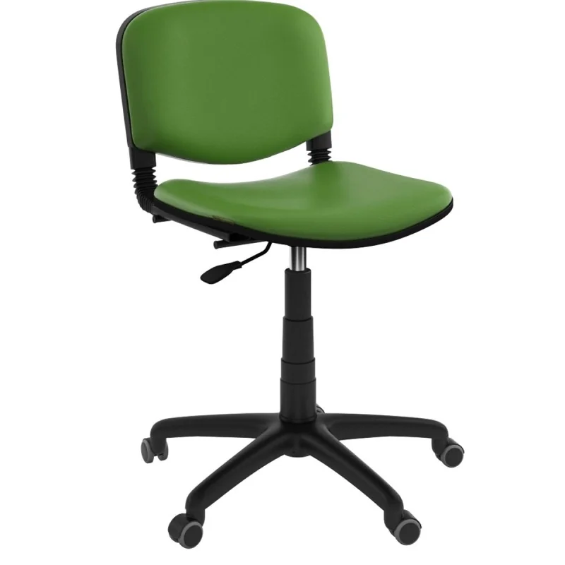 Assise et dossier rembourrés en mousse souple. Le revêtement en simili cuir. Mécanisme tournant, réglable en hauteur avec contact permanent du dossier. Structure étoilé à 05 branches en couleur noir avec 05 roulettes tournantes roulantes à double galets même matière.