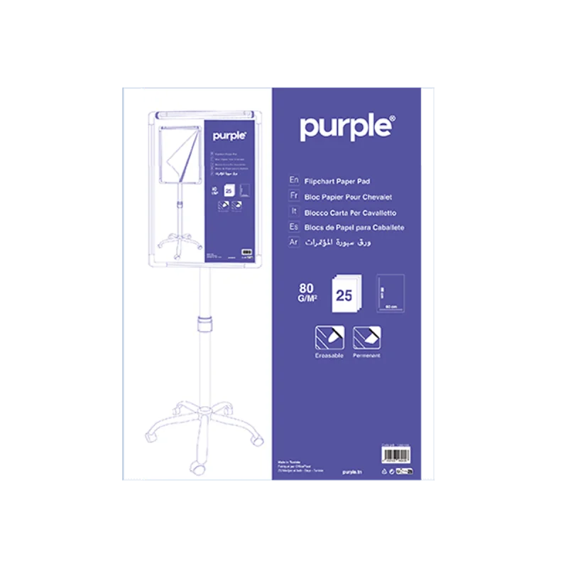 Découvrez le blocs de papier flipchart, la solution pratique pour vos cours, conférences ou présentations. Ce papier pour tableau de conférence mesure généreusement 60cm x 88cm de longueur et comprend 25 feuilles de papier extra blanc 80 gr. Les microperforations permettent un détachement facile des feuilles après usage et les trous d’accrochages sont adaptés à tous les supports de tableau pour un accrochage facile.