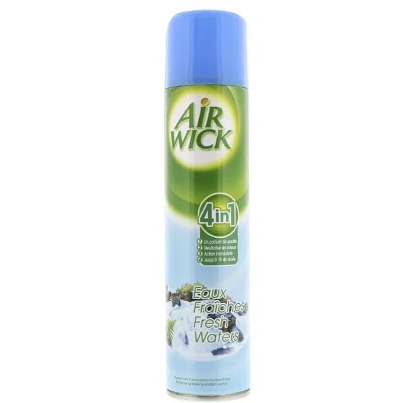 Avec le AIR WICK aérosol 4en 1 le résultat est immédiat. Les odeurs seront éliminées instantanément pour laisser place à un parfum à la fois doux, léger, rafraîchissant. parfum eau fraiches contenance 300 ml