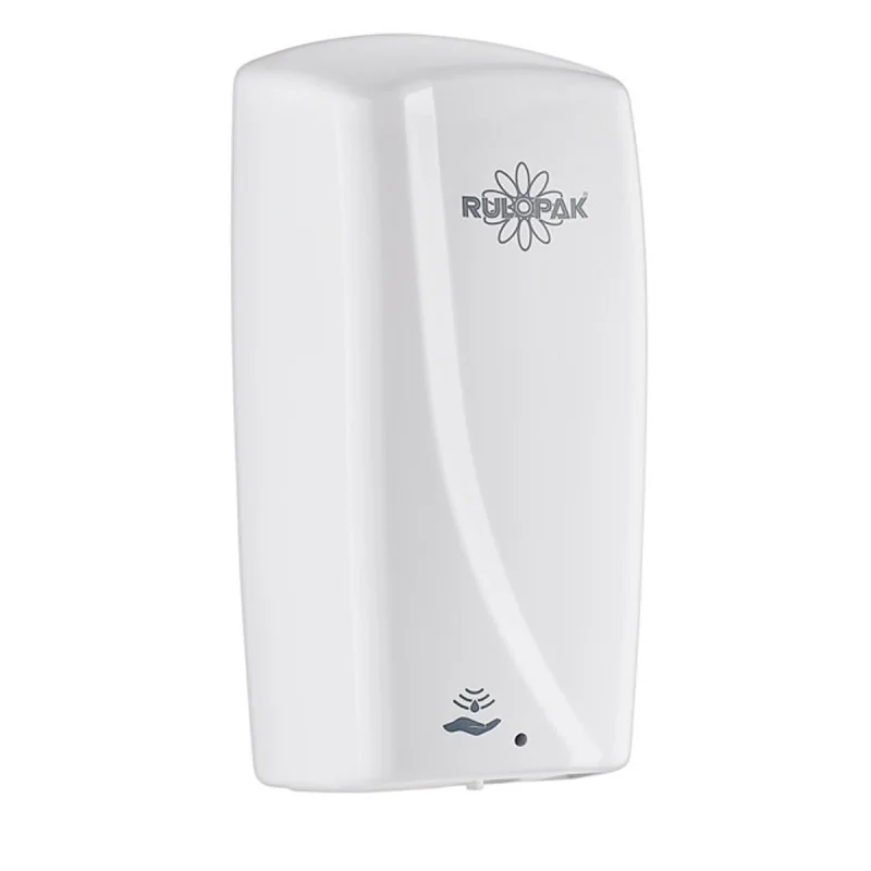 Notre distributeur sans contact RULOPAK est fait de matériau ABS. Il fonctionne avec le capteur, offre une facilité d'utilisation sans toucher. Fournit 0,45 ml de savon liquide / gel avec un ajustement en 3 étapes à chaque fois. Fonctionne avec 6 piles 1,5 V AA