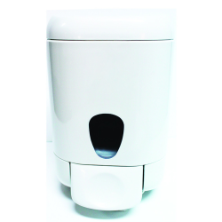 Le distributeur de savon 615B est un appareil robuste en plastique blanc ABS, Consommation minimisée grâce à la distribution par doses, capacité 1000 ml, Fermeture à clé (fournie), réservoir amovible pour faciliter le nettoyage et indicateur de niveau, Niveau de remplissage visible. dimensions 201 x 112 x 128 mm.