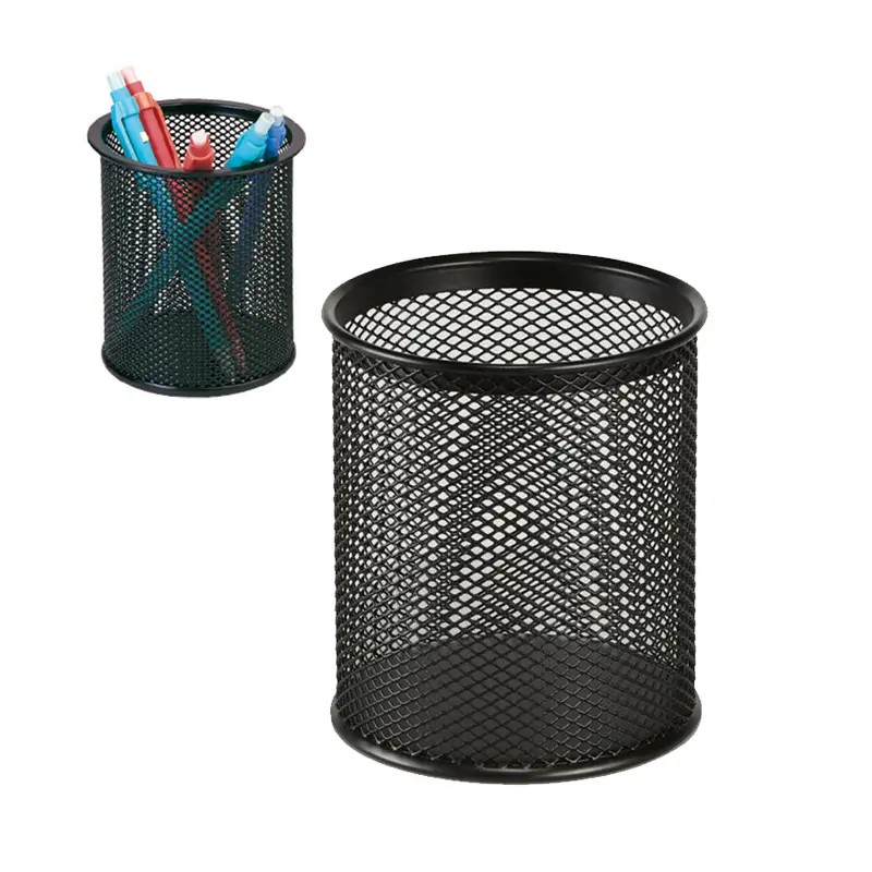 Porte-stylos en métal, de forme ronde, couleur noire. Solide, stable et pratique pour organiser stylos, crayons et petits accessoires sur un bureau. Design sobre et professionnel.