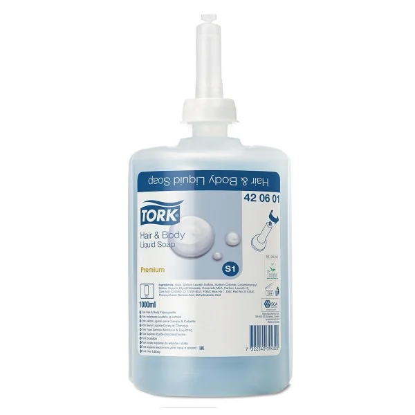 Sa formule douce au parfum unisexe rafraîchissant laisse la peau et les cheveux soyeux. Convient aux distributeurs pour savon liquide Tork, qui sont faciles à utiliser et offrent une bonne hygiène des mains pour tous les utilisateurs.