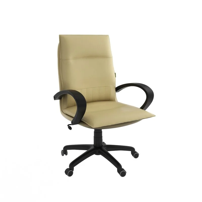 Assise et dossier rembourrés en mousse souple avec couche de dacron. Revêtement en simili cuir. Accoudoirs fixe en Polypropylène couleur noir. Mécanisme tournant, roulant, réglable en hauteur et en inclinaison. Structure étoilée à 05 branches en Polypropylène couleur noir avec 05 roulettes tournantes roulantes à double galets même matière.