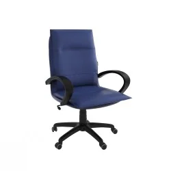 Assise et dossier rembourrés en mousse souple avec couche de dacron. Revêtement en simili cuir. Accoudoirs fixe en Polypropylène couleur noir. Mécanisme tournant, roulant, réglable en hauteur et en inclinaison. Structure étoilée à 05 branches en Polypropylène couleur noir avec 05 roulettes tournantes roulantes à double galets même matière.