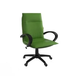 Assise et dossier rembourrés en mousse souple avec couche de dacron. Revêtement en simili cuir. Accoudoirs fixe en Polypropylène couleur noir. Mécanisme tournant, roulant, réglable en hauteur et en inclinaison. Structure étoilée à 05 branches en Polypropylène couleur noir avec 05 roulettes tournantes roulantes à double galets même matière.