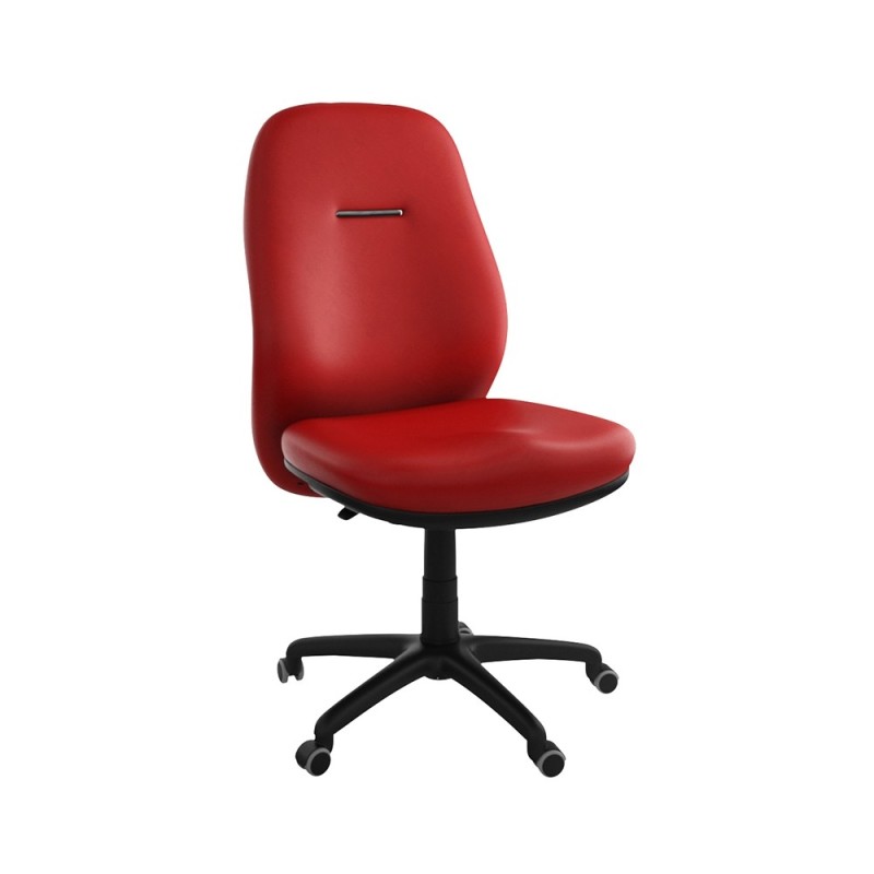 Assise et dossier en mousse injectée. Revêtement en simili cuir. Mécanisme Basculant, tournant, roulant, réglable en hauteur et en inclinaison. Structure étoilée à 05 branches en Polypropylène couleur noir avec 05 roulettes tournantes roulantes à double galets.