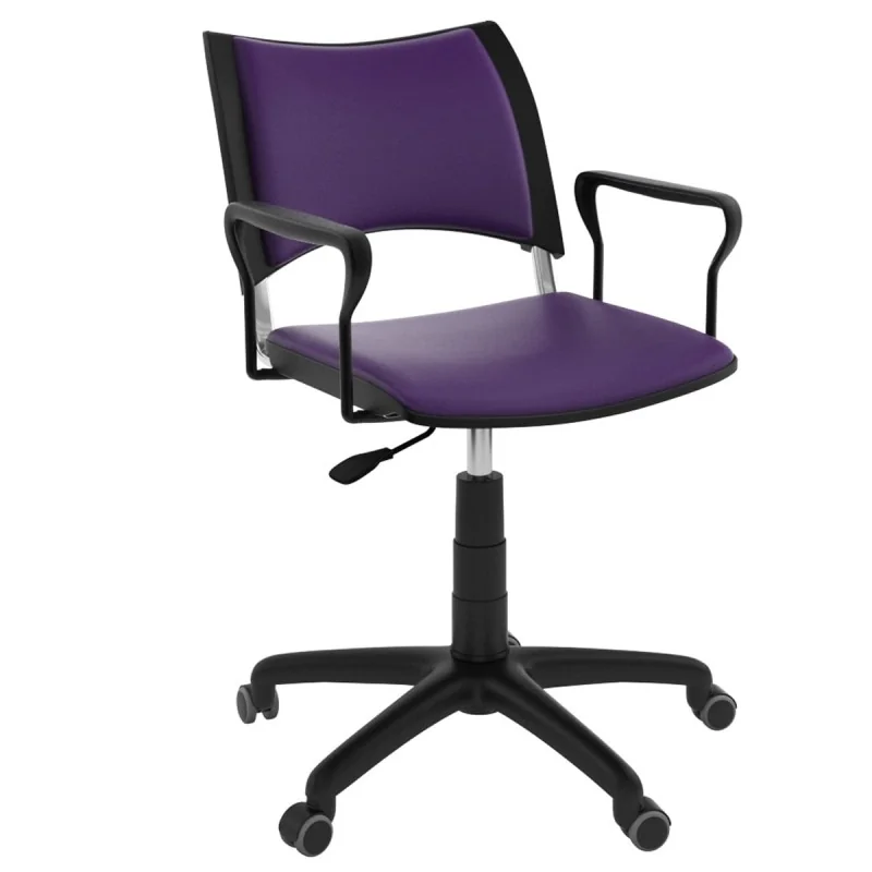 Le Siège Smart tournant roulant présente une assise et dossier rembourrés en mousse souple. Avec ses accoudoirs assortis, il apporte élégance et confort.