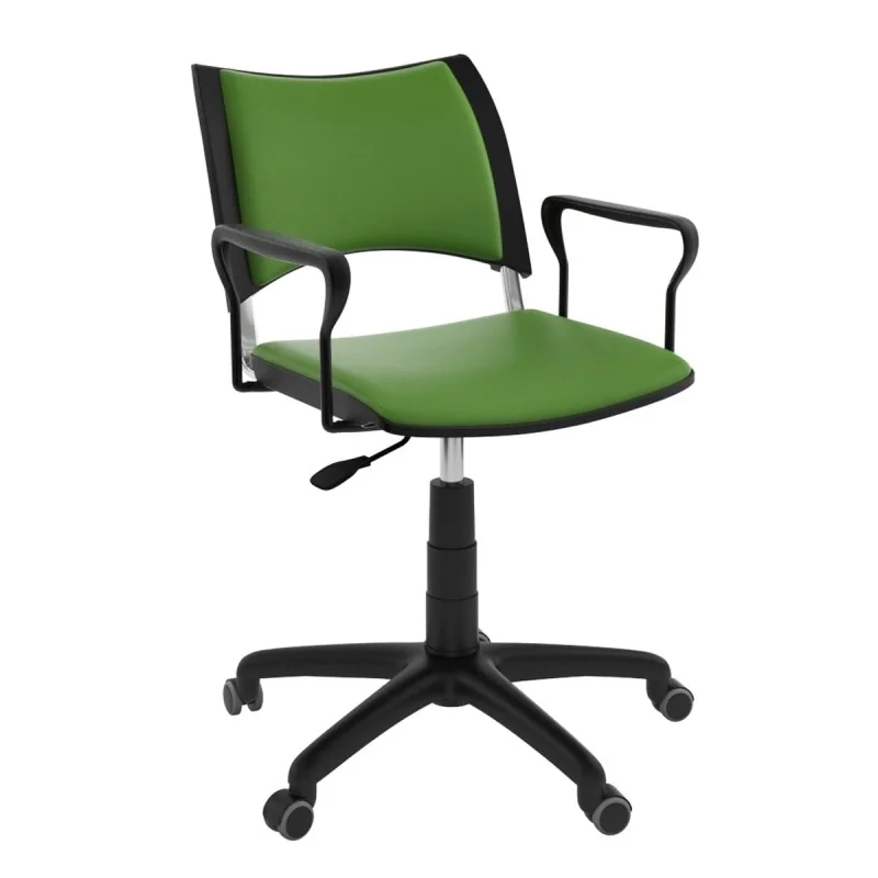 Le Siège Smart tournant roulant présente une assise et dossier rembourrés en mousse souple. Avec ses accoudoirs assortis, il apporte élégance et confort.