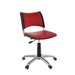 Assise et dossier rembourrés en mousse souple. Revêtement en simili cuir. Mécanisme tournant, réglable en hauteur avec contact permanent du dossier. Structure étoilé à 05 branches fixe en avec repose pieds couleur chromé.