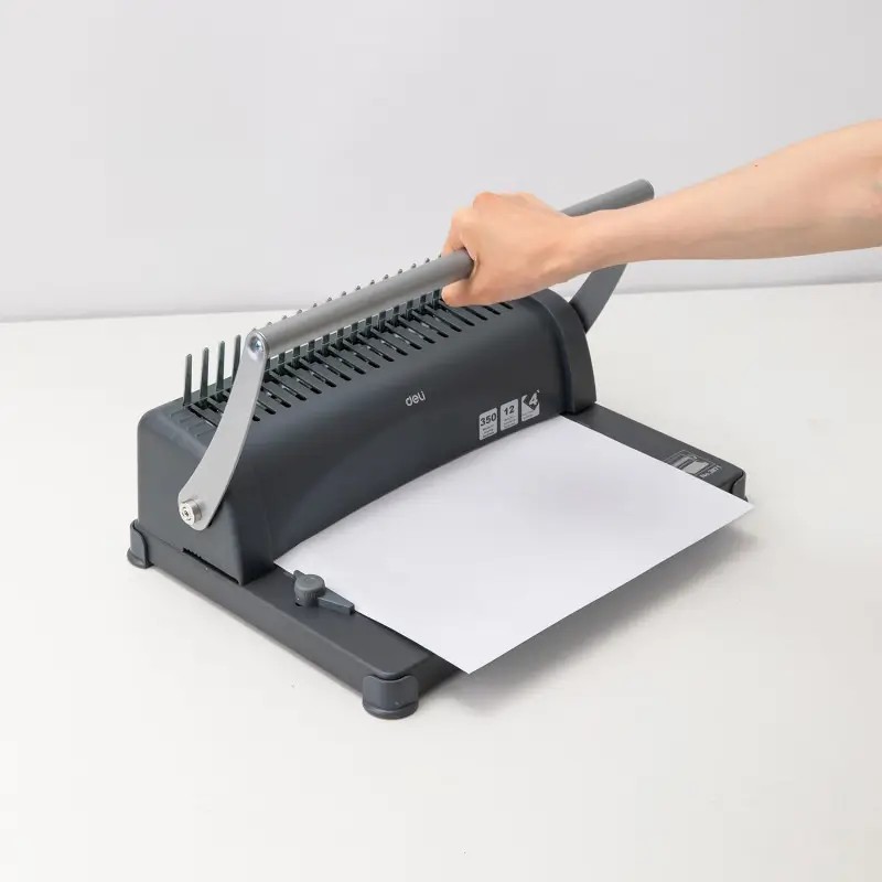Perforelieuse Easy DELI est un appareil performant et économique, capable de perforer jusqu’à 12 feuilles et relier jusqu’à 350 feuilles. Elle est compatible avec le papier A4 ou inférieur, dispose d'une poignée en U pour plus de stabilité et d’un design élégant. Sa perforation à 4 trous et sa durabilité testée jusqu’à 5 000 cycles en font un choix fiable pour un usage régulier.