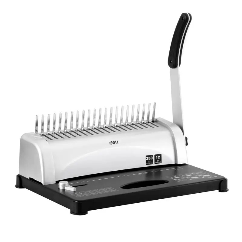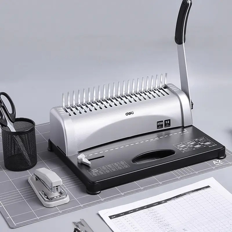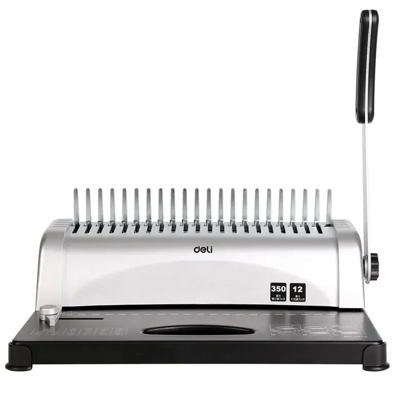 Deli E3870 est une machine de reliure à spirale performante et robuste, idéale pour un usage bureautique, scolaire ou professionnel. Conçue pour offrir une finition propre et professionnelle à vos documents, elle permet de relier facilement rapports, présentations, dossiers ou manuels jusqu’à 350 feuilles.