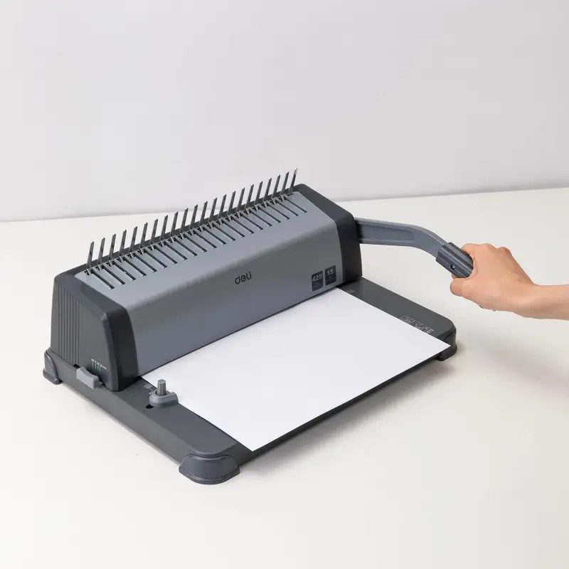 Deli E3872 (modèles 425F / 15F) est une machine à relier à spirale professionnelle, robuste et polyvalente, adaptée aux bureaux et établissements scolaires. Elle offre une reliure précise et rapide grâce à sa conception durable, tout en restant ergonomique et facile à utiliser pour un rendu professionnel.