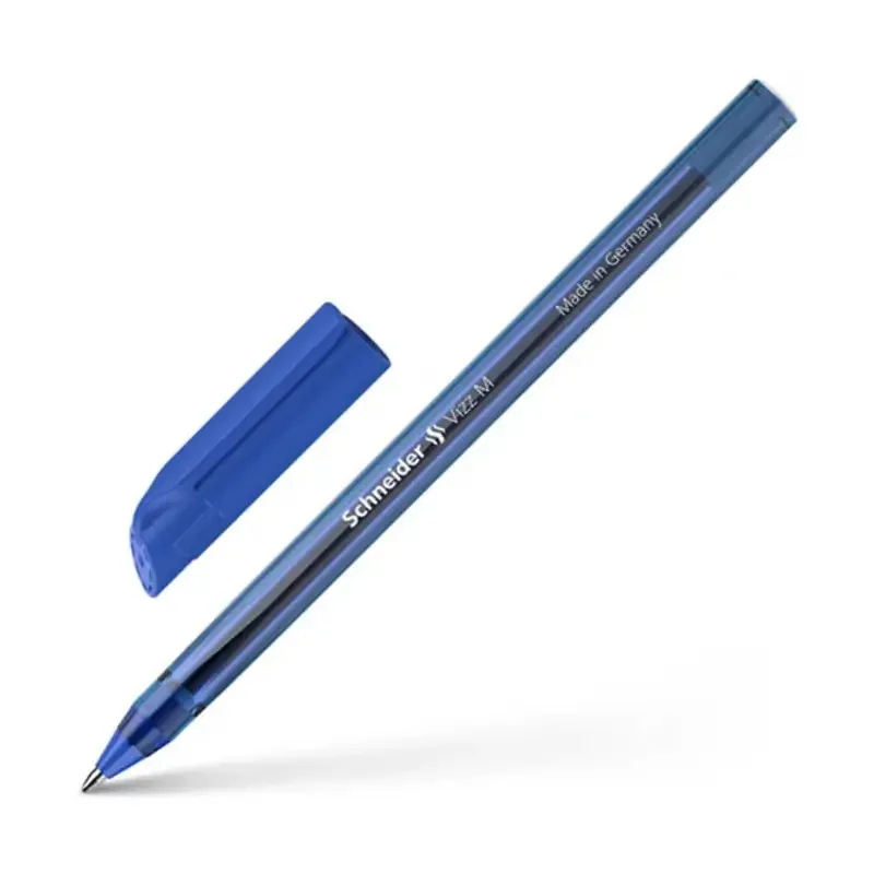 stylo à bille Vizz M Schneider en Bleu Minuit est un outil d'écriture pratique, écologique et agréable à utiliser au quotidien. Doté d’une pointe moyenne (M) d’environ 0,6 mm, il offre une écriture fluide et régulière, grâce à une encre gel de qualité. Son corps transparent coloré permet de visualiser facilement le niveau d’encre, et il est composé à 94 % de plastique recyclé, ce qui en fait un choix plus respectueux de l’environnement. Le stylo est également équipé d’un capuchon avec clip, qui peut se fixer à l’extrémité lors de l’écriture pour plus de confort. Idéal pour l’école, le bureau ou un usage personnel, ce stylo allie design moderne, fonctionnalité et responsabilité écologique.