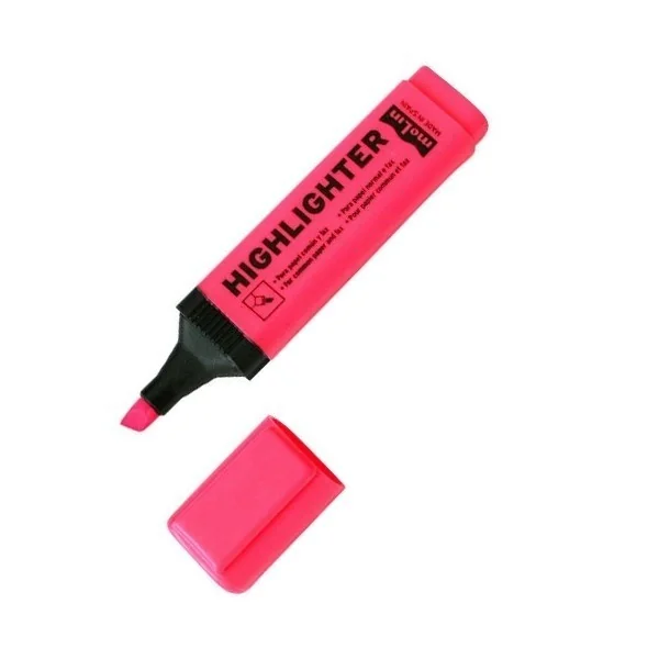 Marqueur fluorescent rose qui nabîme pas vos documents. Grâce à sa pointe biseautée, la largeur de trait peut varier de 1 à 5 mm.
